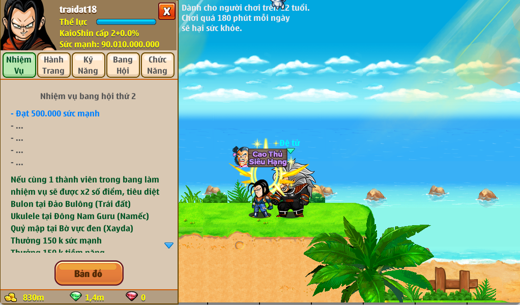 Chú Bé Rồng Online – game nhập vai trực tuyến với cốt truyện và nhân vật dựa trên bộ truyện tranh nổi tiếng Nhật Bản Dragon Ball đã từng làm say lòng bao nhiêu thế hệ độc giả Việt Nam. Bạn sẽ chọn theo hành tinh nào, Trái Đất, Na mếc hay Xay da? Cuộc hành trình tìm kiếm ngọc rồng và chống kẻ hung ác sẽ bắt đầu nằm trong tay bạn.