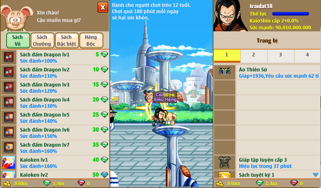 - Ngoài ra bạn có thể mua các sách kỹ năng để nâng cấp chiêu thức, cũng như cải trang để biến hóa hình dạng, tạo sự độc nhất cho nhân vật của mình.